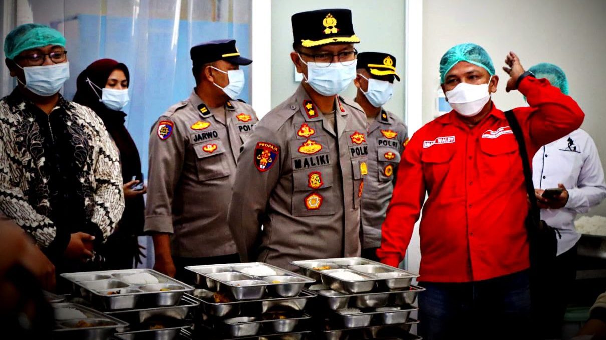 Dalam kesempatan tersebut, Kapolres Trenggalek meninjau secara langsung kondisi dapur, sekaligus melihat proses pemorsian menu MBG.