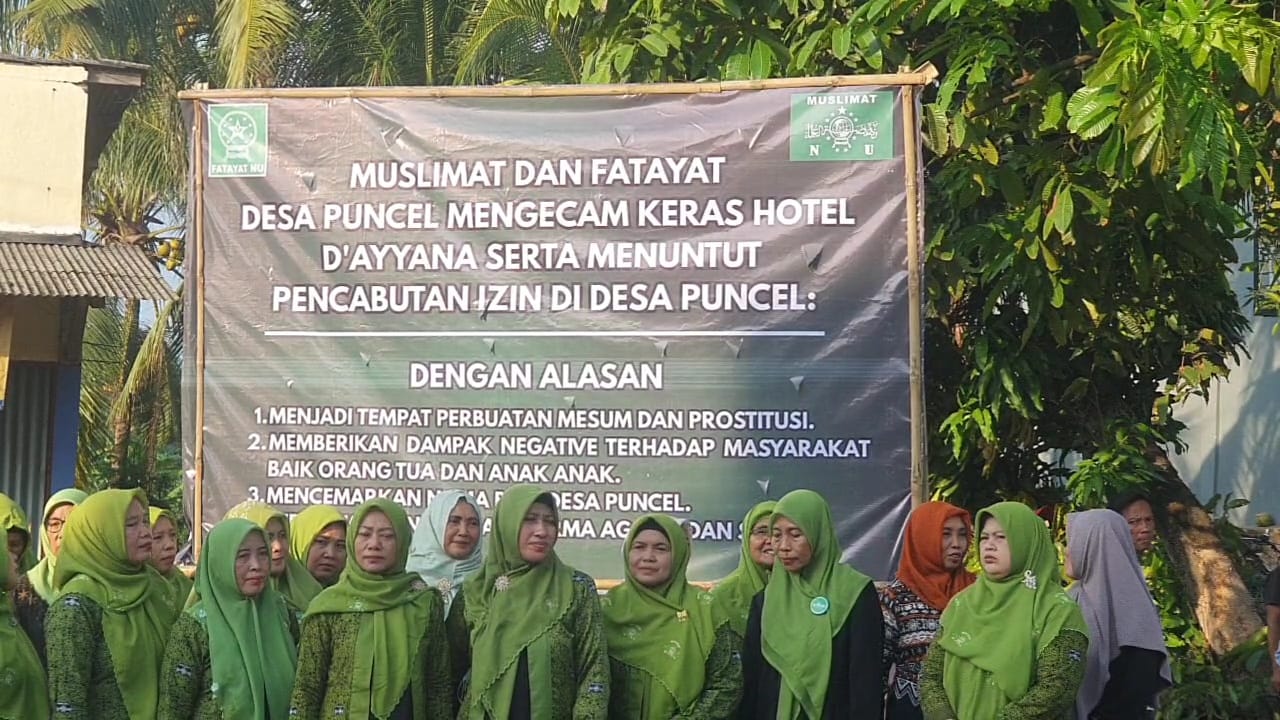 “Kami warga Puncel bersama unsur Muslimat dan Fatayat mengecam keras adanya Hotel D’Ayanna, serta menuntut pencabutan izin hotel. Karena hal ini sangat meresahkan warga,” kecam Ulin.
