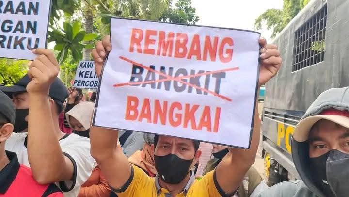 ​Dengan membawa spanduk bertuliskan nada keras, seperti “ANAK CUCU BUKAN TUMBAL INVESTASI” dan mengecam slogan daerah dengan tulisan “REMBANG BANGKIT BANGKAI” massa menuntut tindakan tegas dari pemerintah.