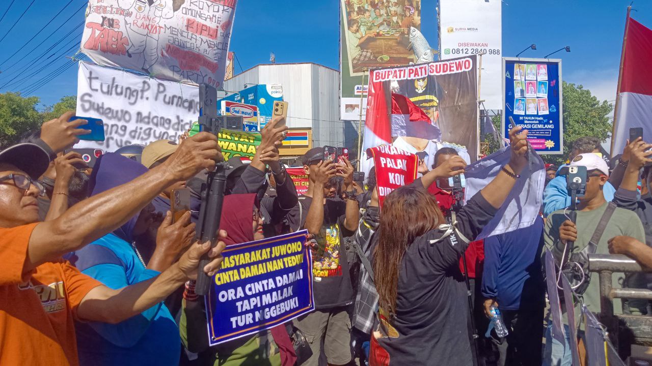 Dipimpin oleh Supranoto, massa yang terdiri dari ratusan warga tersebut, berkumpul dengan berbagai poster dan spanduk menuntut kepada Camat Juwana untuk menolak arogansi Pemkab Pati di bawah kepemimpinan Bupati Sudewo.
