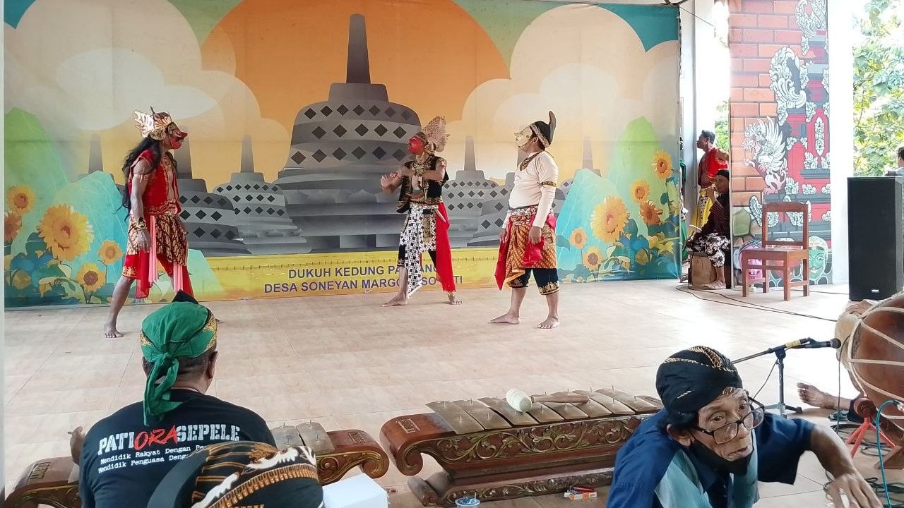 Foto: Pentas wayang topeng Soneyan di acara sedekah bumi (Mondes/Singgih) PATI – Mondes.co.id | Sedekah bumi Dukuh Kedungpanjang, Desa Soneyan, Kecamatan Margoyoso, Kabupaten Pati telah berlangsung pada Sabtu, 18 April 2026.