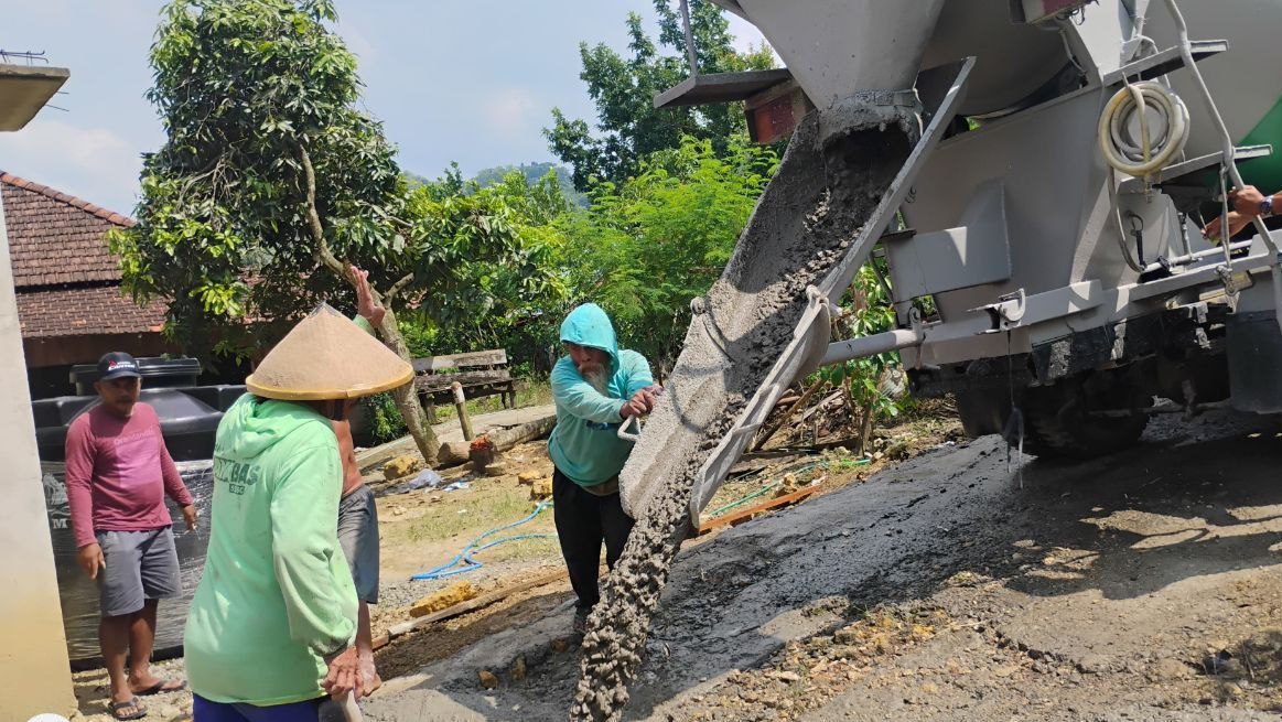 Ia mengecor jalan yang kurang layak sepanjang 100 meter dengan lebar 3 meter.