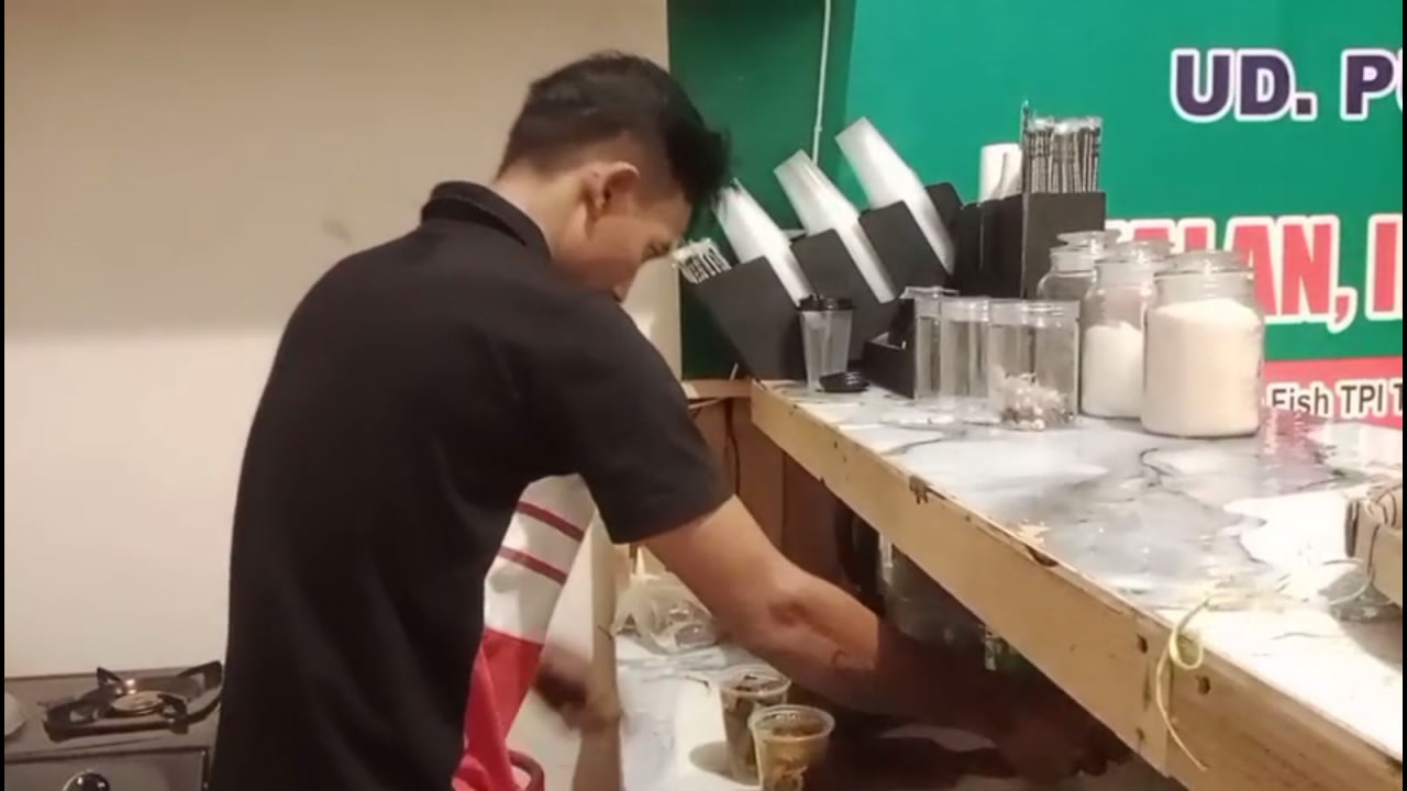 Foto: Nofan saat menyajikan wedang rempah Kedai kopi Dermaga 24 (Mondes/Supriyanto) REMBANG – Mondes.co.id | Kawasan Tempat Pelelangan Ikan (TPI) Tasik Agung, Rembang, kini punya daya tarik baru.