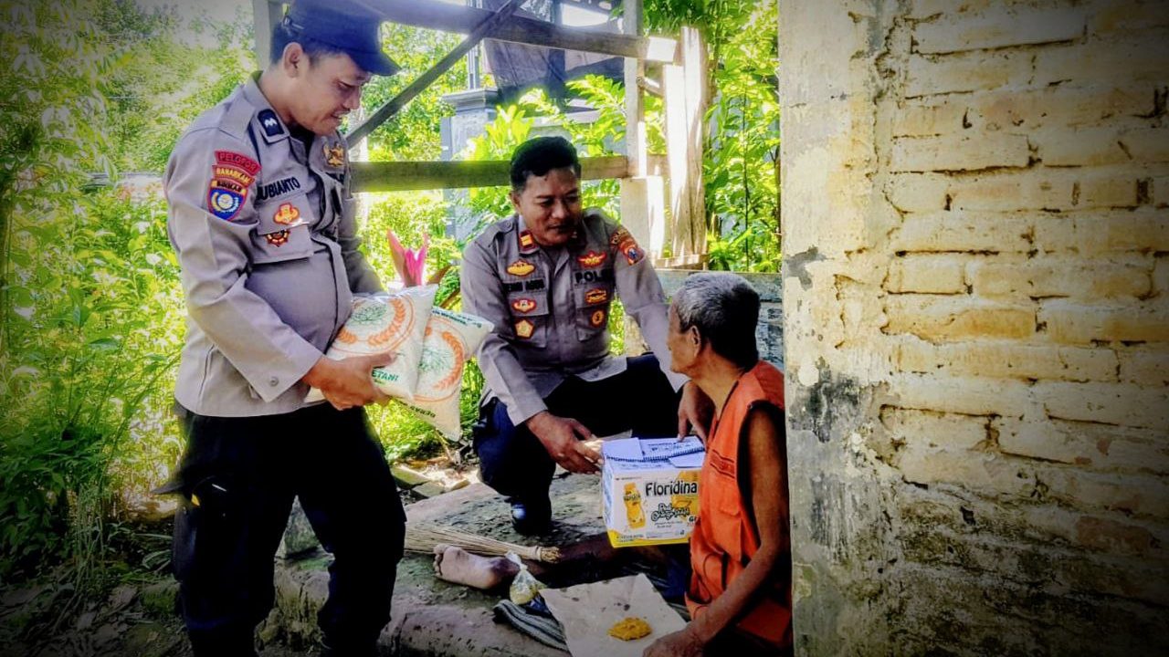 Bahkan, dibawakan paket sembako lengkap langsung oleh Kapolsek Pogalan.